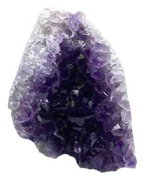 Amethyst geode with several shiny clusters and great vibes.With the flat bottom you can set this on any surface to appreciate its beauty and healing benefits.Each on is unique in sizes and shapes.1.5 - 2lbs seen in image is 4 1/4" tall however sold by weight only and chosen at random.From uruguay