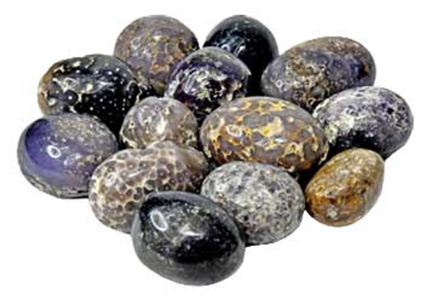 Grape agate also known as purple chalcedony.This is a newer discovery and only found in indonesia.These range in purple hues from dark deep purple to light but may surprise you with some unique colors blended in.Grape agate works with third eye, crown, and etheric chakra.This stone is wonderful to work with for activating psychic abilities, mental clarity, intuition, lucid dreaming, meditation, trust, truth, astral travel, confidence, stability and for dreaming.Sold by weight only with sizes, shapes, colors and inclusions varying from piece to piece.1lb from indonesia.