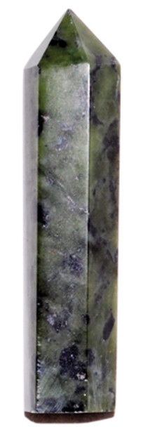Powerful nephrite point.Nephrite jade is the stone of fidelity, working with the heart chakra especially around balancing of the masculine and feminine energies.It is a protective stone that helps dysfunctional relationships, transmutes negative energy into positive and promotes confidence.2" plus in height and roughly 1/2" plus base.