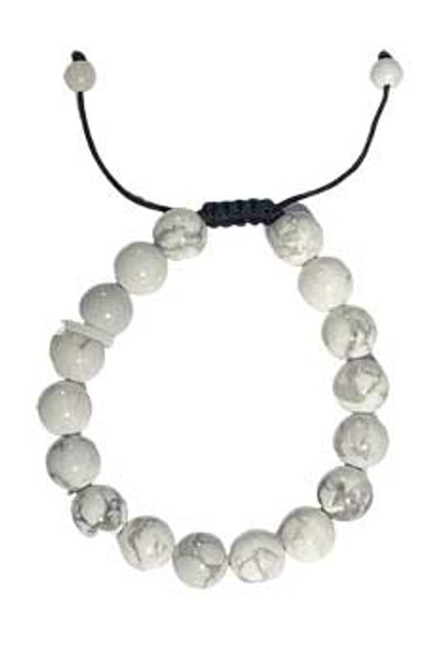 Adjustable howlite beaded bracelet.Howlite decreases an overactive mind, aids in meditation, prepares the mind to receive insight, wisdom and heightens creativity.10mm