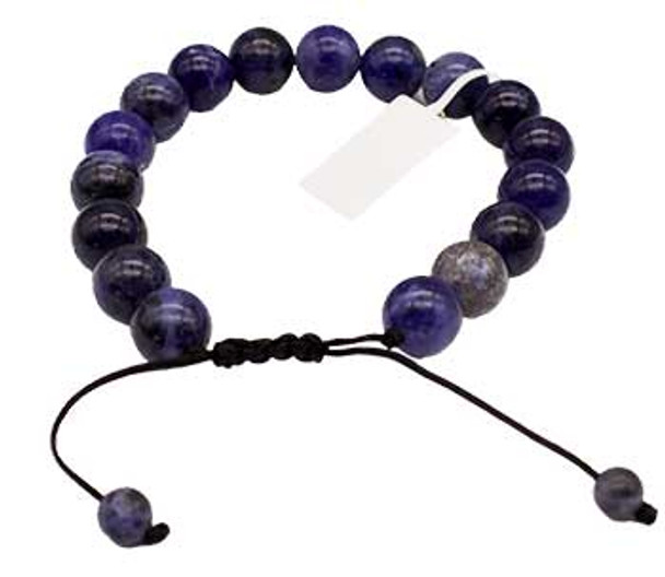 Adjustable sodalite beaded bracelet.Sodalite helps with high blood pressure, diabetes, insomnia, autism, good for ideas, endurance, communication, stabilizes emotions, clarifies perception and is great for meditation.10mm
