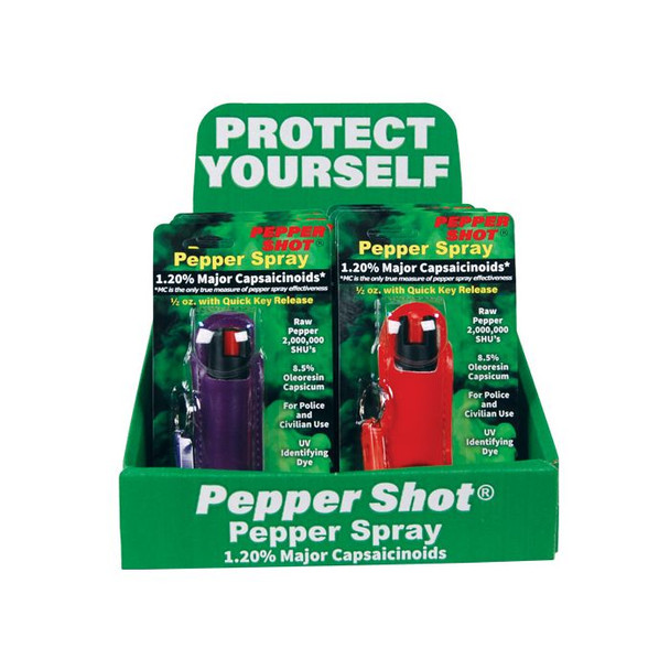 Add to Cart Quick view 12 PS-HC (3 Black, 3 Blue, 3 Pink, 3 Red) with Counter Display Safety Technology MSRP: Now: Now: $74.28 Was: 12 Pepper Shot 1.2% MC PS-HC (3 Black, 3 Blue, 3 Pink, 3 Red) with Counter Display