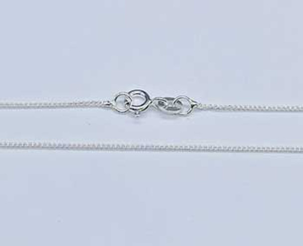 Sterling silver curb chain that has flattened, twisted and tightly interlocking links.18" long and marked.925 with sizes that may vary slightly