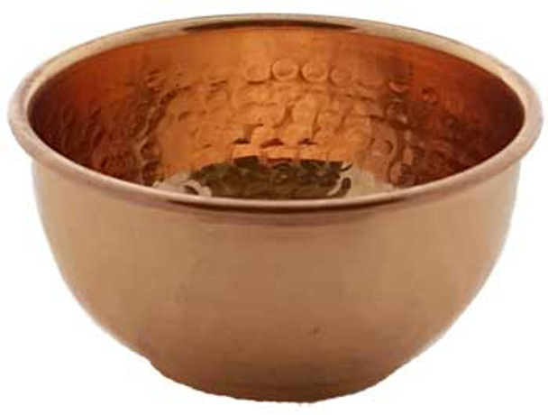 Hammered design with rolled rim, this copper offering bowl can be used for any purpose or altar.Fill with blessed water for anointing or put any offering or special item within.Copper 1 1/2" x 3"