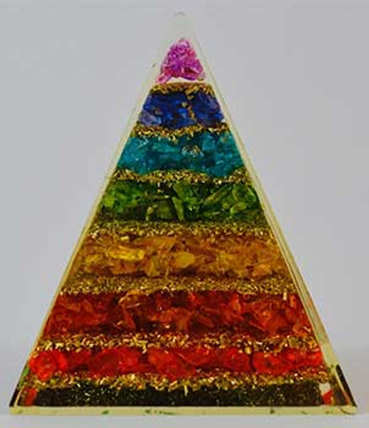 Description Description 7 chakra layered orgone pyramid.Feel the energy rise up through this special piece.Looks great on any surface. View AllClose
