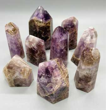 A flat of super 7 polished points with a range of sizes.Super 7 shares its healing energy from seven different crystals that these contain.May assist with ascension, psychic gifts, enlightenment, and heals all the chakras.Image shows the amount of 3lbs however it is sold by approximate weight only, each flat is unique in sizes, shapes, colors, and inclusions.From brazil