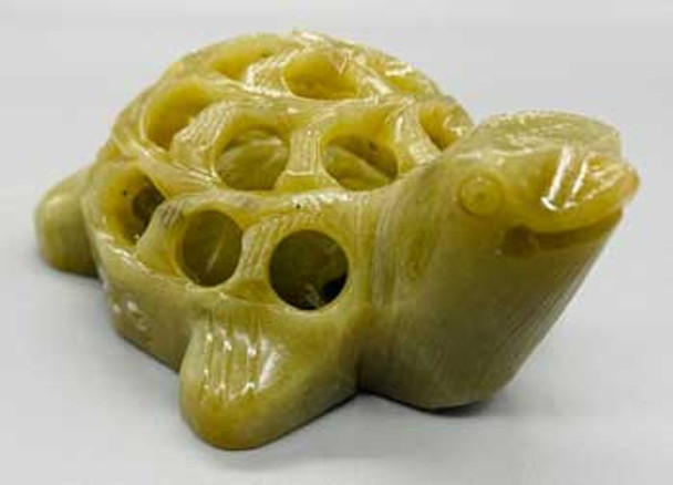 A turtle carved out of beautiful soapstone with a mini turtle within.Turtles represent longevity, perseverance, protection, healing, and transformation.Sizes, shapes, colors, and inclusions will vary.From india