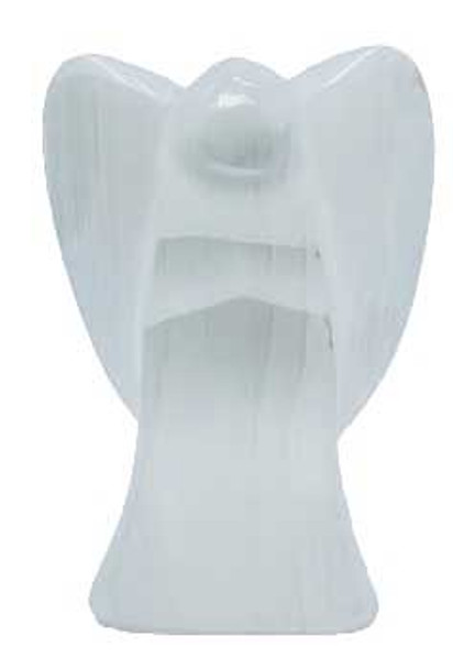 A sweet soft figure of an angel created from selenite.Allow the high vibration of selenite with the peacefulness of the angels fill the energy around you when you have this piece nearby.4" selenite carved angel.Sizes and natural flaws may be present.