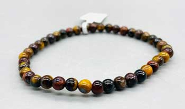 A one size fits most bracelet made from natural stone beads strung on a durable elastic band.This bracelets energy is that of all 3 types of tiger eye, red.Beads - 4mm - sizes may vary slightly