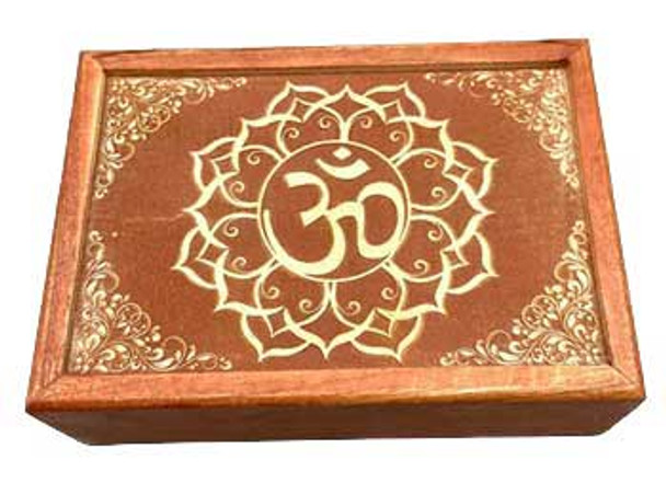 A wooden box with om symbol in the center, decorates the top of this beautiful box.Made from acacia wood and finished with great details.5x7 box