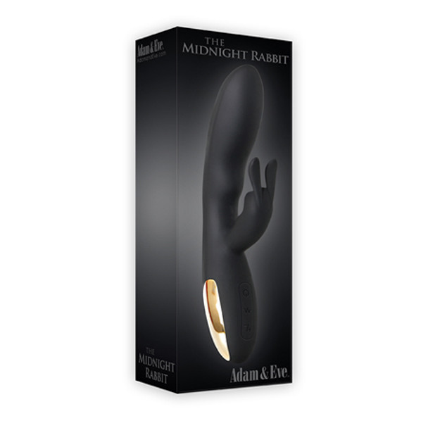 Luxurious silicone rabbit vibrator features dual motors, one in the shaft, one in the clitoral stimulator. It offers 10 vibration functions including patterns, pulsation, and escalation, and 4 constant speed settings. Curvy G-spot shaft and flicking bunny ears target the hot spots. Handle has gold-plated accents. USB rechargeable, with cable included. Submersible. Measures 5.5 in. long by 1.5 in. wide. @summer2020-04