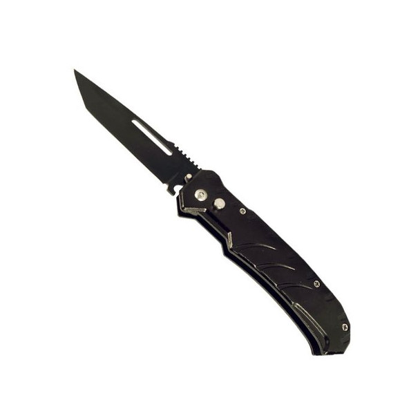 Automatic Heavy Duty Knife with solid handle and safety lock. Black Color