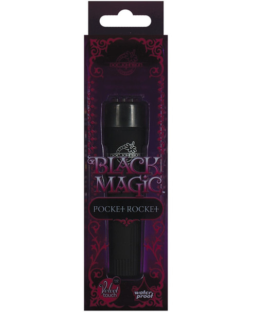 Doc Johnson's Black Magic line is a spellbinding new line of classically designed vibrators in not-so-basic black. The Black Magic Pocket Rocket is waterproof and features Doc Johnson's sensuas Velvet Touch coating. Takes one AA battery, sold separately.