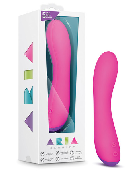 Magnify your senses. This sophisticated vibrator is made of pure, body-safe, silky smooth silicone. Magnify is a work of art and an object of pleasure, carefully sculpted to achieve perfection in form and function. Magnify is powered by a deep resonating motor that emits strong satisfying vibrations and features 7 vibrating functions. The bulbous tip and the curvature are beautifully designed to stimulate your G spot. Whisper quiet. Magnetic/USB rechargeable. Waterproof, submersible, and easy to clean.