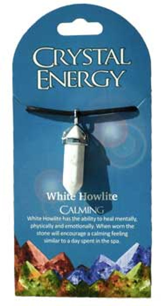 Crystal energy - white howlite, calming.White howlite has the ability to heal mentally, physically and emotionally.When worn the stone will encourage a calming feeling similar to a day spent in the spa.Comes with a 6 faceted white howlite pendant and adjustable black cord.