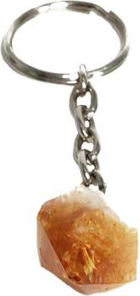 Its like carrying the sun in your pocket with this key chain.Citrine points fitted on chain with a split ring for your keys make it obvious this is your special key.Keeping this with you daily may brings abundance, wealth.Helps study and learning, good for relationships, and new beginnings.1" - 1 1/2" (heat treated).