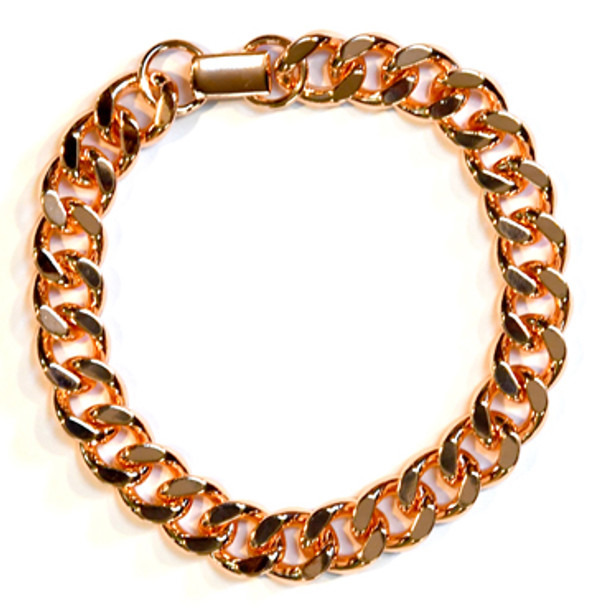 Heavy weighted copper chain bracelet.Copper may assist with bones, blood vessels, nerves, immunity, and has been known to assist in cardiovascular disease and osteoporosis.Marked copper with each link being almost 1/2" wide.