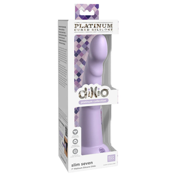 The Dillio® Platinum Collection is made with platinum-cured silicone for the HIGHEST degree of purity. This ultra-clean silicone exhibits strength, durability, flexibility, and non-reactivity with bodily fluids and skin. It is often the material of choice for medical devices because of its many outstanding features. The solid suction cup offers superior performance and gives you more versatility and convenience during use. It was specifically designed to be used with the Body Dock® and other universal strap-on harnesses. Every Dillio® Platinum is responsibly crafted with compliant materials and carefully checked to match our top-quality guidelines. You can enjoy every Dillio® Platinum masterpiece with full confidence! KEY PRODUCT FEATURES: Made with the Highest-Quality Platinum-Cured SiliconeNon-Sticky, Smooth SurfaceSuper-Strong Suction Cup BaseGreat for All User Levels!Compatible with Body Dock® & Other Strap-On HarnessesADDITIONAL PRODUCT FEATURES: One-year warranty coverage CARE INSTRUCTIONS: Dillio® Platinum silicone dildos easily clean with warm water and antibacterial cleaner. For extra comfort, use a water-based lubricant like Moist®. Total Length: 7.75 in (19.7 cm) Total Width: 1.4 in. (3.6 cm) Insertable Length: 7 in. (17.8 cm)