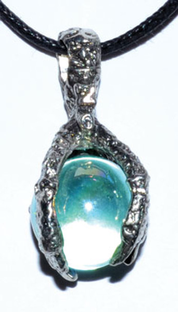 A dragon claw grasping an orb.Find the strength of dragons manifesting itself in your work with the aid of this powerful talisman.Orb will vary from aura glass clear to solid with different coloring.Has cord.Nice quality pewter.1.25"-1.50"+