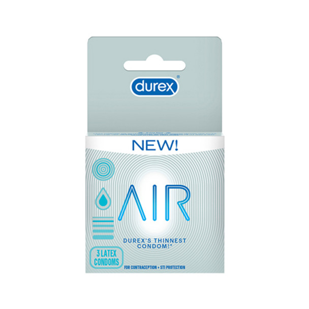 Introducing DUREX'S THINNEST CONDOM* AS LIGHT AS AIR *Based upon Durex sales in the U.S. Durex AIR condoms are ultra thin, designed to maximize sensitivity, and still give a high level of security and protection. Air condoms are lubricated and teat-ended for a more comfortable and pleasurable experience. Every single one is packed the right way up for simple, fumble-free usage. These nearly see-through condoms are made from the finest raw materials. Each condom is tested 5X for durability and strength. ULTRA THIN: Air condoms are the thinnest developed by Durex while providing a high level of protection against STI's and pregnancy TRANSPARENT: ultra thin, lubricated and nearly see-through; these condoms are made from premium-quality, natural rubber latex WORLD'S #1 CONDOM BRAND: Durex is the world's #1 condom brand* trusted over 90 years DUREX QUALITY: Each Durex condom for men is 100 percent electronically tested for strength, flexibility and reliability and features a pleasant scent