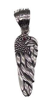 Two birds are intertwined and set with ruby eyes.A wonderful piece with lots of great detail in the sterling silver setting.Hangs approximately 2" with a 3/4" width.