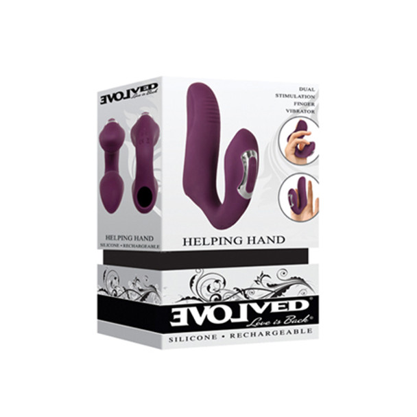 Deal yourself a winning hand with this dual-motor vibe that slips over your finger to give your solo play time a vibrating edge. Caress two hot spots at once with the massaging finger shaft that delivers robust internal vibrations and the powerful clitoral shaft dedicated to your primary erogenous zone. Each motor operates independently, revving up to 8 speeds and functions, even underwater as this toy is completely submersible. With flexibility to move with your body and an ergonomic grip that lets you operate the 2-button control panel with ease - intense pleasure is truly in your hands! Rechargeable and easy to clean with Evolved Toy Cleaner and a warm water rinse. Dual stimulation finger vibratorFinger slips into main shaftToy base fits comfortably in handTwo points of targeted vibrationStimulating textures on both shaft tipsFlexible to move with your body2 powerful motors controlled separately8 vibrating speeds & functions for each motorMade from creamy-smooth siliconeDetail made from durable ABS plasticChrome-finished control panelButtons & panel illuminate when in useHeight: 5.32", Depth: 3.5", Width: 1.45"Insertable length of 4" with just over 1.25" widthWeight: Under .5 lbWaterproof & submersiblePhthalate & latex freeRechargeable, USB cable included