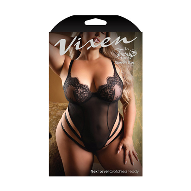 Strappy Crotchless Teddy with Lace Underwire CupsSizing Info - Queen SizeSize: 14-18Bust: 42"-46"Hips: 42"-49"Materials: 80% Nylon, 20% SpandexAlso available in O/S and L/XL.
