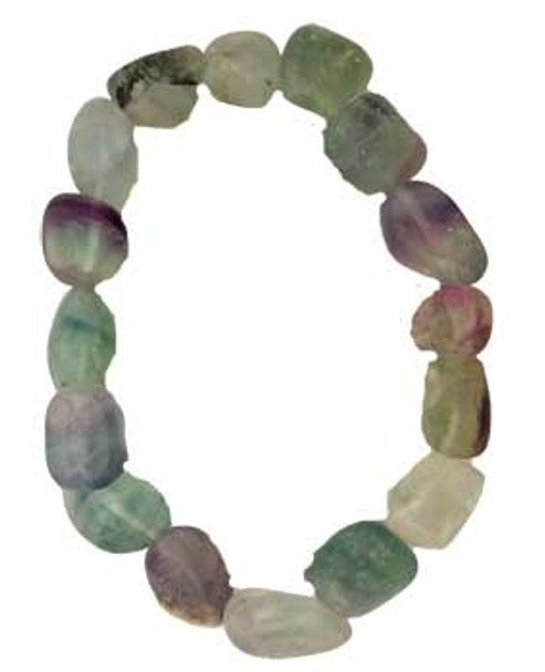 Fluorite is a mineral that comes in many colors with many wonderful properties.Fluorite may assist you with bone health, organ function, dexterity, balance, self-worth, new ideas and inspiration.Strung on heavy weight elastic, one size fits most.Natural stone beads, with their own unique qualities, tones and imperfections - shape/size will vary.Rainbow fluorite beads 3/8" - bracelet (unstretched) 2 3/4".