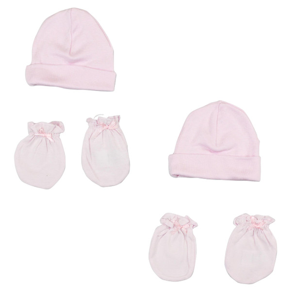 Pink Baby Cap (100% Cotton), Pink Infant Mittens (Jersey), Pink Baby Cap (100% Cotton), Pink Infant Mittens (Jersey)