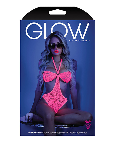 Glow Black Light Halter Bodysuit W/open Sides Neon Pink
