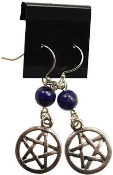 These earrings allow you to focus your energy with a short meditation.Lapis may assist you with vitality, wisdom, disorganization, the immune system, relaxation, and depression.Great for bringing about insight and spiritual transformation hypo allergenic, surgical steel french hooks.Lapis lazuli, pewter.Charms are 3/4, length is 2.Made in usa.