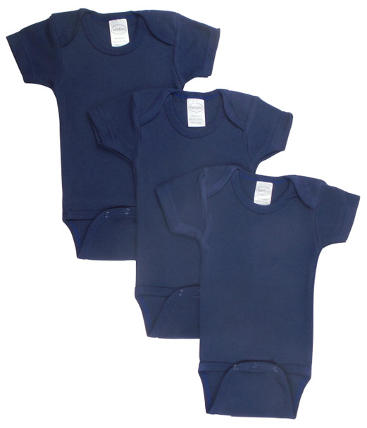 Bambini Navy Short Sleeve One Piece made from 100% cotton rib knit fabric, this 3 pack of short sleeve onezies is not only comfortable and cozy but will help keep your little one comfortably mobile. It's Navy color will make it go with just about anything.