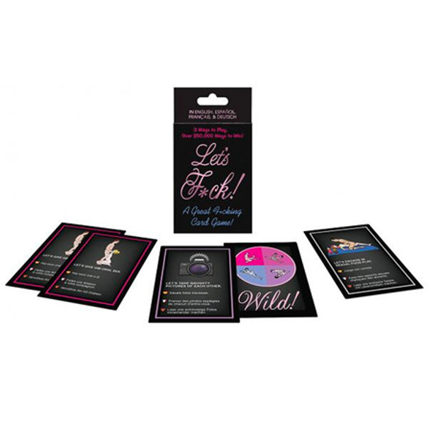 The quick and easy game that gets you laid! Includes 48 Let's F... Cards, 4 Let's Fck Wild Cards, and rules for 3 games: Fck Fortunes, Match & Fck, and Personal Fck Questions. One size fits most.