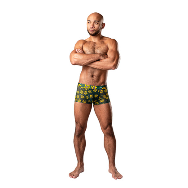 From the Petal Power collection by Male Power, the Pouch Short with a 60's inspired flower pattern in see through deluxe stretch mesh. Lined comfort pouch, high cut legs and a low cut coordinating printed waistband. Full rear coverage.Fine sheer stretch mesh print, airy and breathable. Coordinating printed deluxe elastic waist and leg bands.94% Polymide, 6% Spandex