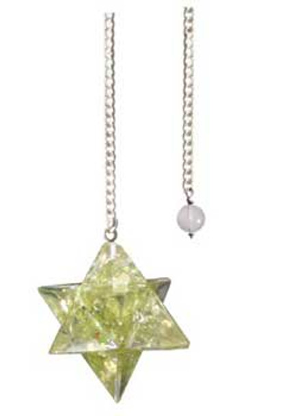 Merkabah peridot orgone pendulum.Peridot is a powerful cleanser that releases and neutralizes toxins, both physically, emotionally and spiritually.From india.