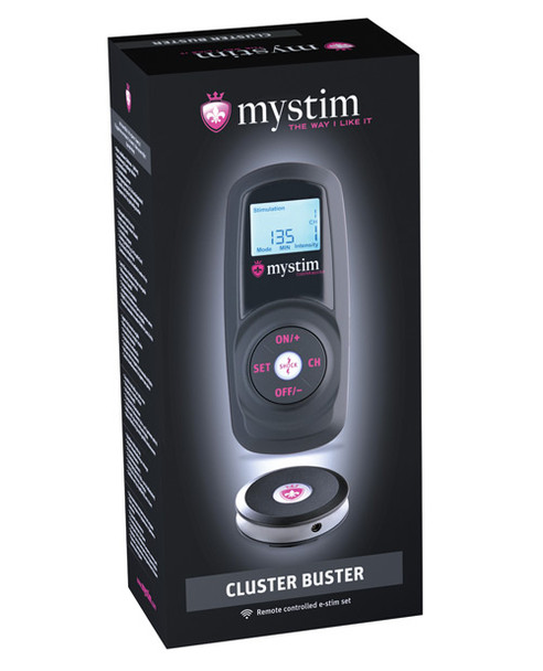 The Mystim Cluster Buster comes with a stylish storage box, a remote control, a receiver, a bi-polar electrode and a user manual. The device is "only" supplied with a receiver, but can control an unlimited number of receivers, the "Mystim Sultry Subs". This means that in the future with only one device an unlimited number of electrosex toys can be controlled. These toys can be grouped into a total of 8 channels, each of these channels is completely separate from each other and can stimulate in its own program and intensity. The Cluster Buster not only has 12 electro-stimulation programs, but also 5 muscle stimulation programs, perfect for stimulating the pelvic floor intensively and effectively. The clear display and the buttons are backlit and guarantee good visibility even in darker rooms. Another feature? The new "shock button". When activated, the device will give its maximum intensity until the button is released. Both the device itself and the receivers are powered by a high-quality lithium ion battery, which guarantees a standby time of up to 12 months. Of course, the right charging cable is already included in the starter set. One Year Warranty.