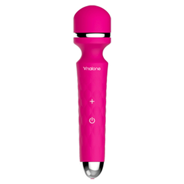Rechargeable wand vibrator houses a powerful motor in its silicone head to send vibrations straight to intimate spots. Features 7 vibration modes. Waterproof. 7.5 in. long.