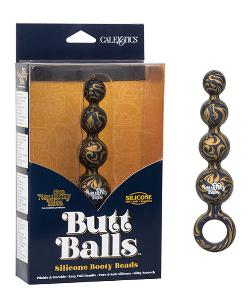 The Naughty Bits Butt Balls Silicone Booty Beads is made for all your anal needs with a plush silicone, tapered beads and easy retrieval loop. The petite plug has a sturdy o-shaped retrieval loop for comfortable insertion, thrilling stimulation and safe, gentle removal. Perfect for beginners and erotic experts alike, the tapered shaft increases in girth for intensifying pleasure.
