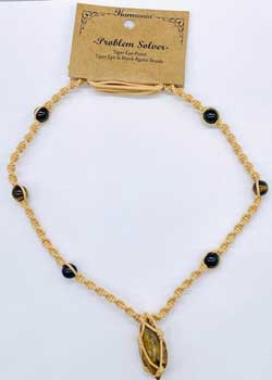 Problem solver necklace with tiger eye and black agate crystals are woven into a detailed knotwork cord.Tiger eye is a powerful stone that gives you the strength to live and transform your life.Black agate protects from anxiety, nightmares and bad energy.Adjustable cord.