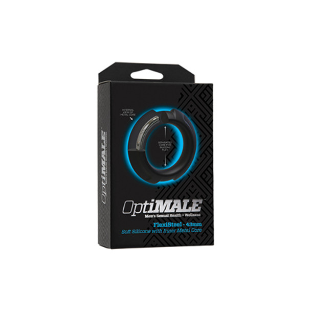 For something strong yet flexible, this 43 mm black cock ring combines the extreme feel of a stainless steel design with the precision fit of durable silicone. Featuring an open-sided metal ring sheathed in a sturdy, stretchable band of premium silicone, this design strikes the perfect hard/soft balance of stretch and rigidity. A beveled edge intensifies the pressure in all the right places to complete the experience. Metal C-Ring for Intense SensationSplit-Ring Design and Velvet-Touch Silicone Sheath for Safe, Comfortable UseDelays Ejaculation and Prolongs ErectionEnhances Penis Size and ThicknessEasy to Clean-Top Rack Dishwasher SafeHypoallergenic, Nonporous, and OdorlessPhthalate Free, Body SafeWidth/Diameter: 3 in. (7.6 cm) Unstretched Inner Diameter: 1.69 in. (43 mm) Depth: 0.6 in. (15 mm)