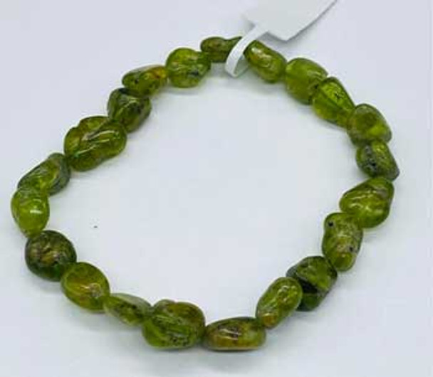 A powerful peridot nugget beaded bracelet.Wearing peridot may promote healing within, attract love, calm anger, help with sleep, and wealth.
