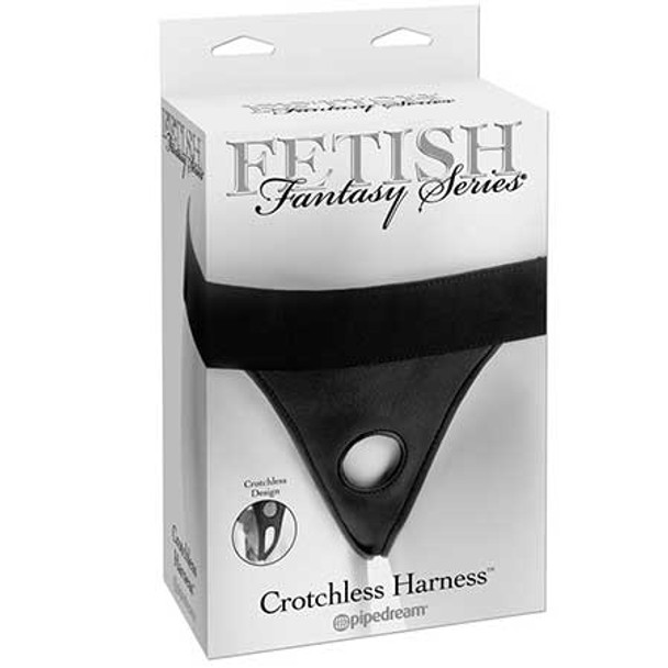 This incredibly comfortable Crotchless Harness is designed with an opening between the legs for easy access to your most pleasurable parts! The soft vinyl material prevents chafing and feels great against the skin, while the thong-style back offers sleek and sexy style. The durable elastic waistband comfortably fits waists up to 60 in. and features a velcro strap for easy adjusting. There's no need for an O-Ring--most dongs fit snug through the 1.5 in. hole, keeping everything in place even when the action heats up.