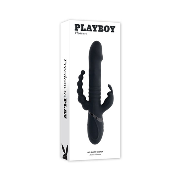 Freedom to Play:Turn it on and feel the Big Bunny Energy for yourself. Stimulating three erogenous zones at once, this energetic triple-shaft Rabbit Vibrator will leave you breathless. Two swirling beaded rings insde the main thrusting shaft provide a thrilling internal massage that begins at the realistically-shaped tip. Explore a tri-gasmic experience with the gently curved Anal Beads, powerful vibrations in the shaf, and external bunny shaped stimulator.Play with me (key feature): Triple stimulation from Anal Beads, thrusting shaft, and external stimulatorVibration: 7 vibrating speeds and rhythms, 3 thrusting and rotating speeds and rhythmsMaterial: Body-safe Silicone, Phthalate and latex freeWaterproof: YesWarranty: Five yearsRechargeable: USB cable includedSize Specs:Height: 10.3"Depth: 3.89"Width: 1.71"Diameter: 1.5"Insertable Length: 6.25"Weight: 12.2 oz. (with packaging: 23.8 oz.)