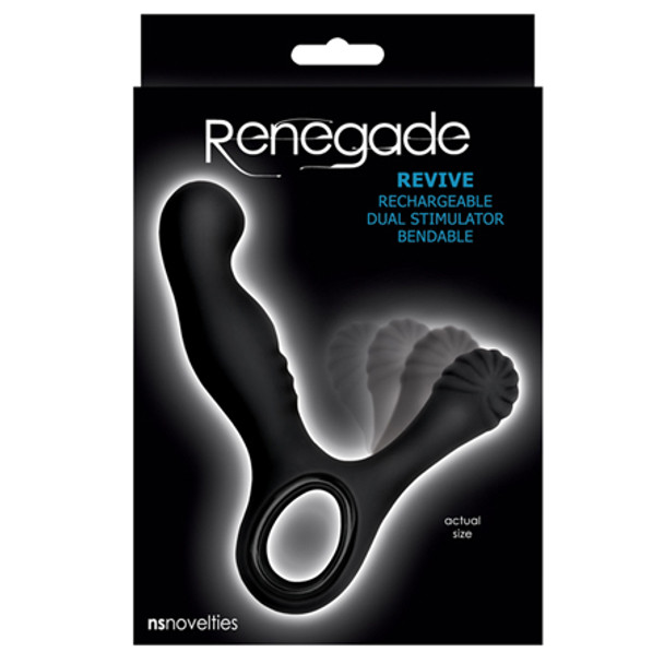 Fashionably designed to deliver vibrations where you want them most. Revive's dual motors target the prostate and the testicles. This adjustable wonder bends to reach all the right places. Silicone coated and rechargable premium male massager will ignite passions and deliver extraordinary satisfaction. waterproof and suitable for all lubricants. Magnetic USB charger included. Measures 5.5 by 1 in.