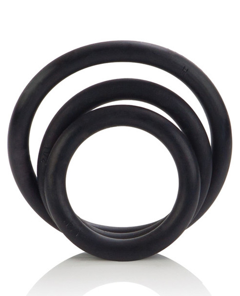 You never know when you might find yourself in need of a selection of cock rings. These black rubber Os are the perfect penis enhancement tool. Simply select one or more of the rings in this 3-piece set and arrange them on your cock for superior support. Use one alone or experiment with all three at once to provide extra enhancement for you and three times the sensation for your partner.