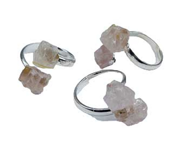 Wear the energy healing of rose quartz throughout your day with these adjustable rings.Two pieces of raw rose quartz sit upon a silver toned adjustable ring.Each piece will be unique in coloring as well as inclusion in crystal.From brazil