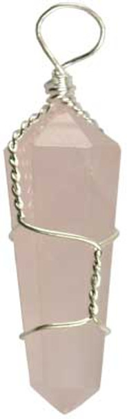 Rose quartz is one of the most important gemstones and has been said to open the heart chakra to unconditional love.Wire wrapped with a simple yet powerful design.Approximately 1 3/8" long and does not come with a chain or cord.