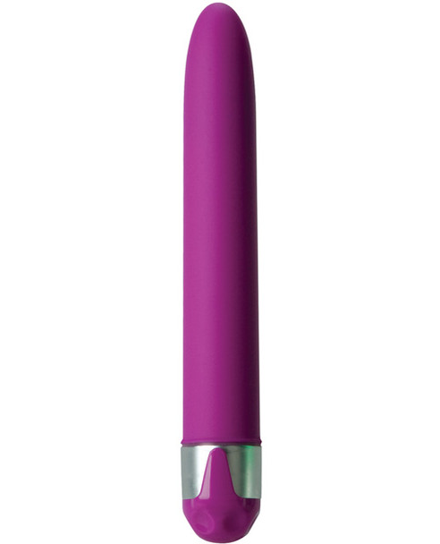 Party on with the Shane's World All Night Long Sorority Party Vibe from California Exotics. The All Night Long is a silky smooth, multi-speed massager that is powerful, totally waterproof and lined with Velvet-Cote for your comfort. Extra power for long study sessions! Requires 2 AA batteries (not included). ABS with Velvet-Cote (PU Cote); Metallic Plating (cap band). 6.5"x 1"/ 17 cm x 3 cm. Purple.