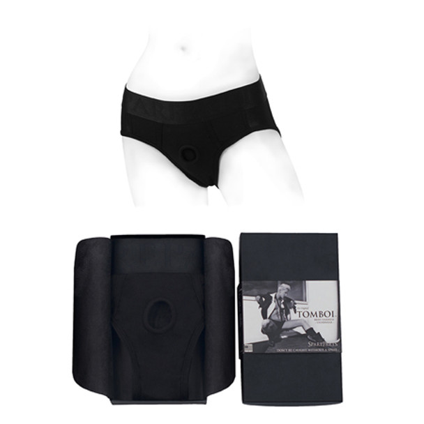 With a bold attitude and athletic cut, Tomboi harness briefs from SpareParts deliver a smooth shot of sex appeal and get right to the chase: let's do this. And it's hard to say no, because this bad boi smashes the very boundaries of pleasure, from the super-durable O-ring to the drive-'em-wild mini-vibe pockets. Tomboi slides on and off smoothly, without any chafing buckles, dangling straps, pinched skin, or other baggage to get in the way. Lightweight, breathable fabric means you can wear it all day long, and the hidden inside pocket stashes away anything from condoms to cash. The Rayon is for those who prefer a Cotton or more natural feeling fabric. Rayon is better than cotton as it doesn't pile like Cotton, it also retains its color and has more bounce back then cotton does, nor does it stain the way cotton does. As for the main difference for users you can use Rayon in water environments but we don't recommend it as it will absorb water, whereas Nylon repels water. Turn up the pleasure. Two internal mini-vibe pockets (vibes not included) are stitched above and below the O-ring - just beyond bodily contact - to send the perfect pulse of pleasure to both partners. (It's good to be generous.)85% Rayon, 15% SpandexWaistband 36 - 44"Hip 36 - 53"Gusset 27 - 36"Leg opening 24 - 36"O-ring circumference 5 - 7"O-ring diameter 1.25 - 2.25"Restricted from 3rd party website selling.