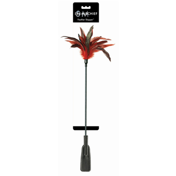 A treacherous tool that goes both ways.Alternate instantly between pleasure and pain with this sexy and playful red feather slapper. One end boasts a plume of frisk feathers in dramatic red and black...